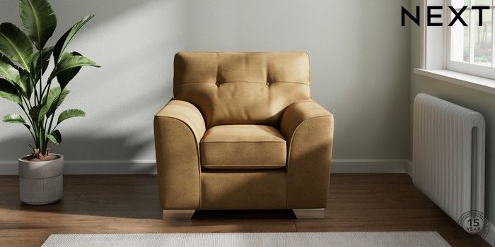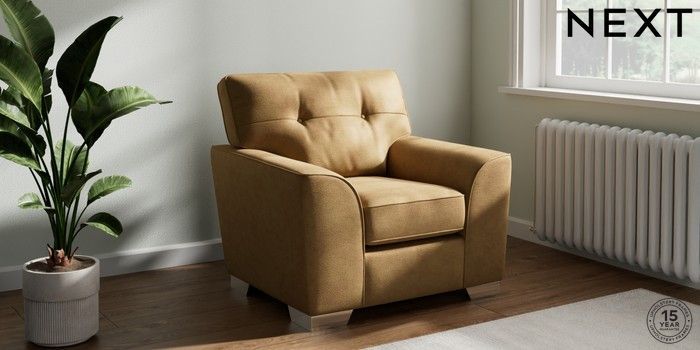 7.2.6 Buy Stamford Buttoned Back Armchair Luxe Chenille Honey Yellow Square Angle - Chrome Metal from the Next UK online shop Click here to use our accessible website