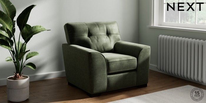 7.2.6 Buy Stamford Buttoned Back Armchair Luxe Chenille Mid Green Square Angle - Dark from the Next UK online shop Click here to use our accessible website