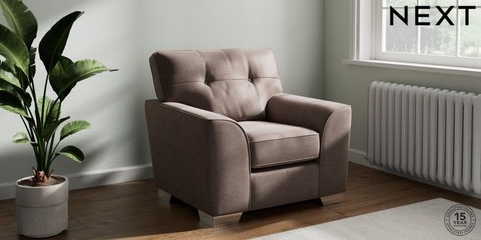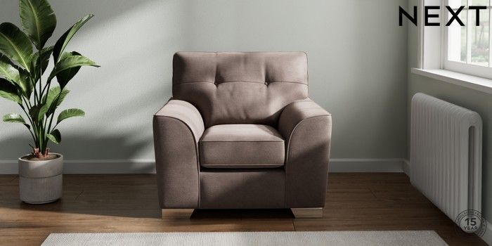7.2.10 Buy Stamford Buttoned Back Armchair Luxe Chenille Mink Brown Square Angle - Chrome Metal from the Next UK online shop Click here to use our accessible website