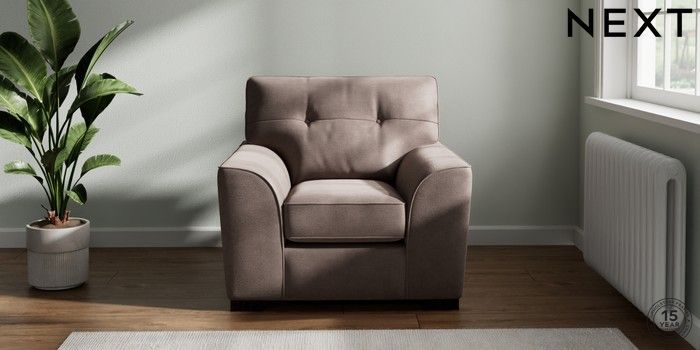 7.2.10 Buy Stamford Buttoned Back Armchair Luxe Chenille Mink Brown Square Angle - Dark from the Next UK online shop Click here to use our accessible website