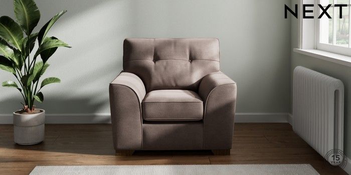 7.2.10 Buy Stamford Buttoned Back Armchair Luxe Chenille Mink Brown Square Angle - Mid from the Next UK online shop Click here to use our accessible website