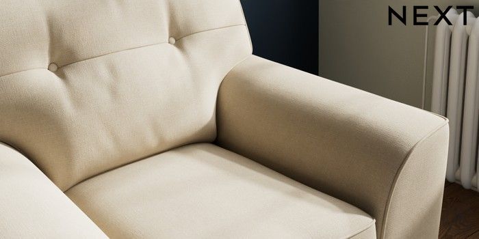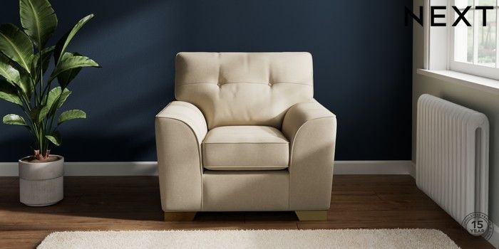 7.2.10 Buy Stamford Buttoned Back Armchair Natural Mix Light Natural Square Angle - Brushed Brass from the Next UK online shop Click here to use our accessible website