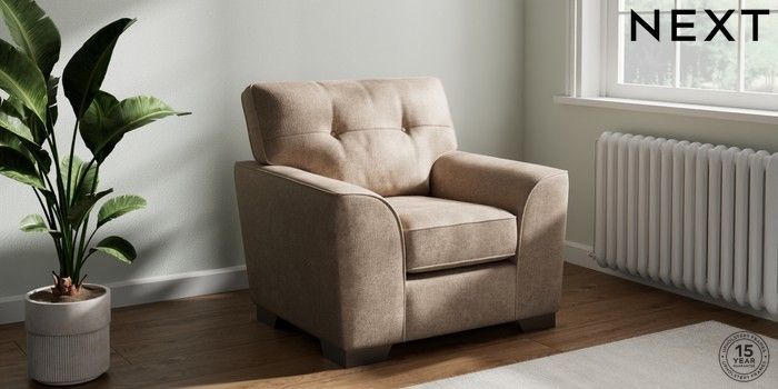 7.2.10 Buy Stamford Buttoned Back Armchair Plush Chenille Mid Natural Square Angle - Gunmetal from the Next UK online shop Click here to use our accessible website