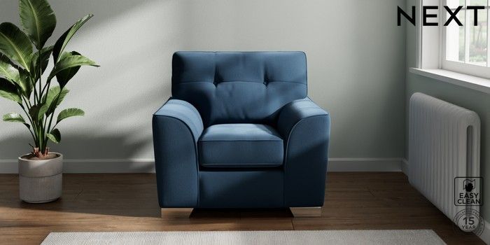 6.12.1 Buy Stamford Buttoned Back Armchair Plush Velvet Easy Clean Airforce Blue Square Angle - Chrome Metal from the Next UK online shop Click here to use our accessible website