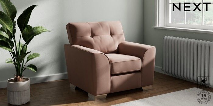 7.3.1 Buy Stamford Buttoned Back Armchair Plush Velvet Easy Clean Mid Natural Square Angle - Chrome Metal from the Next UK online shop Click here to use our accessible website