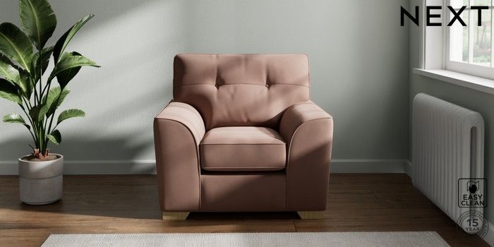 7.2.6 Buy Stamford Buttoned Back Armchair Plush Velvet Easy Clean Mid Natural Square Angle - Light from the Next UK online shop Click here to use our accessible website