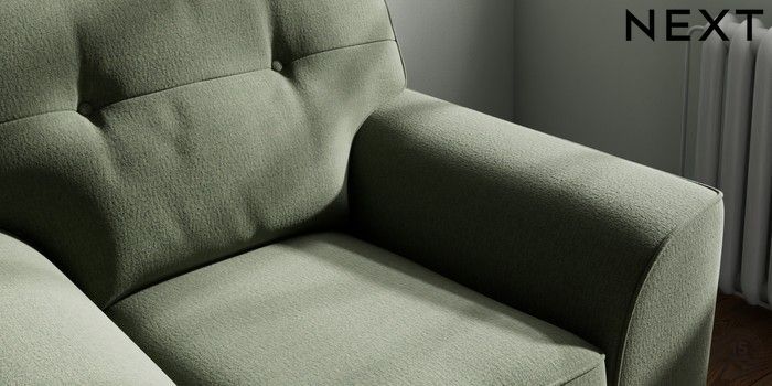 7.2.10 Buy Stamford Buttoned Back Armchair Relaxed Linen Look Dark Green Square Angle - Brushed Brass from the Next UK online shop Click here to use our accessible website