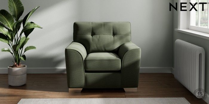 7.3.1 Buy Stamford Buttoned Back Armchair Relaxed Linen Look Dark Green Square Angle - Chrome Metal from the Next UK online shop Click here to use our accessible website