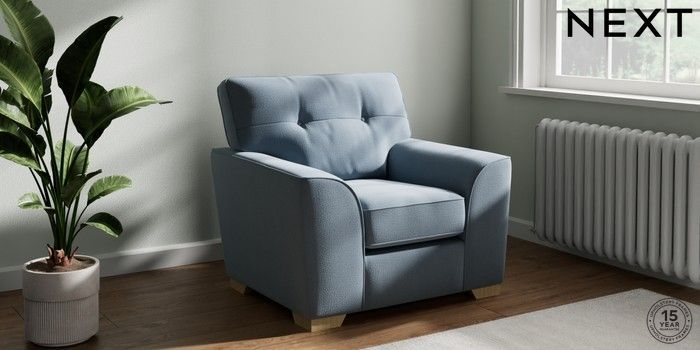 7.2.10 Buy Stamford Buttoned Back Armchair Relaxed Linen Look Mid Blue Square Angle - Light from the Next UK online shop Click here to use our accessible website