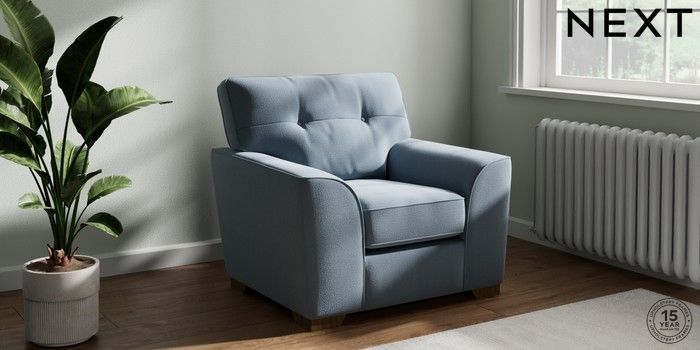 7.2.10 Buy Stamford Buttoned Back Armchair Relaxed Linen Look Mid Blue Square Angle - Mid from the Next UK online shop Click here to use our accessible website