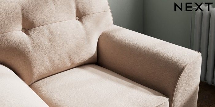 7.3.1 Buy Stamford Buttoned Back Armchair Relaxed Linen Look Mid Natural Square Angle - Chrome Metal from the Next UK online shop Click here to use our accessible website