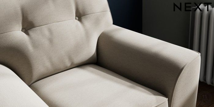 7.2.10 Buy Stamford Buttoned Back Armchair Ripple Chenille Light Natural Square Angle - Brushed Brass from the Next UK online shop Click here to use our accessible website