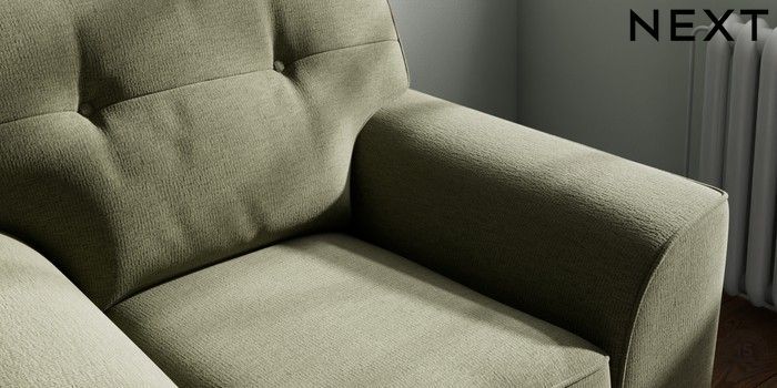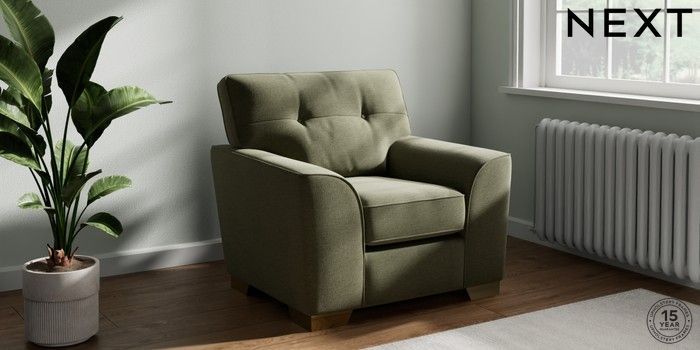 7.2.10 Buy Stamford Buttoned Back Armchair Ripple Chenille Mid Moss Green Square Angle - Brushed Brass from the Next UK online shop Click here to use our accessible website