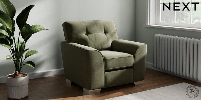 7.2.10 Buy Stamford Buttoned Back Armchair Ripple Chenille Mid Moss Green Square Angle - Chrome Metal from the Next UK online shop Click here to use our accessible website