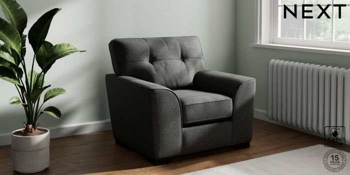 7.2.10 Buy Stamford Buttoned Back Armchair Tweedy Blend Easy Clean Charcoal Grey Square Angle - Dark from the Next UK online shop Click here to use our accessible website