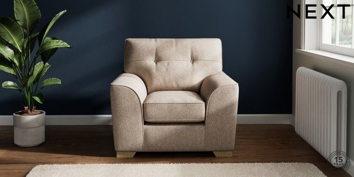 7.2.6 Buy Stamford Buttoned Back Armchair Tweedy Chenille Mid Natural Square Angle - Light from the Next UK online shop Click here to use our accessible website