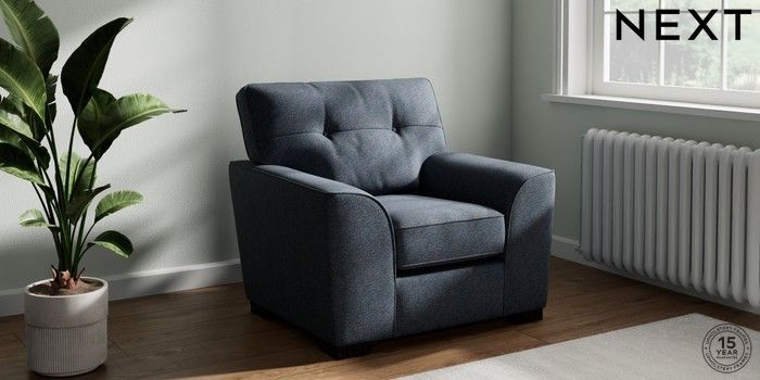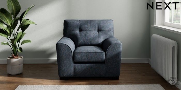 7.2.10 Buy Stamford Buttoned Back Armchair Tweedy Chenille Navy Blue Square Angle - Dark from the Next UK online shop Click here to use our accessible website