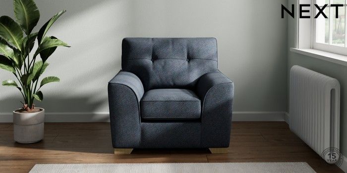 7.2.6 Buy Stamford Buttoned Back Armchair Tweedy Chenille Navy Blue Square Angle - Light from the Next UK online shop Click here to use our accessible website