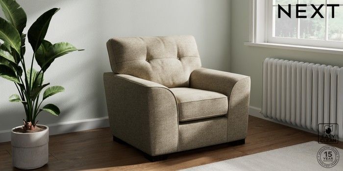 7.2.10 Buy Stamford Buttoned Back Armchair Woven Chenille Easy Clean Mid Natural Square Angle - Dark from the Next UK online shop Click here to use our accessible website