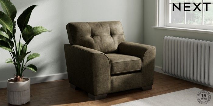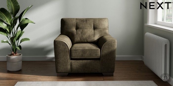 7.2.10 Buy Stamford Buttoned Back Armchair Plush Chenille Moss Green Square Angle - Gunmetal from the Next UK online shop Click here to use our accessible website