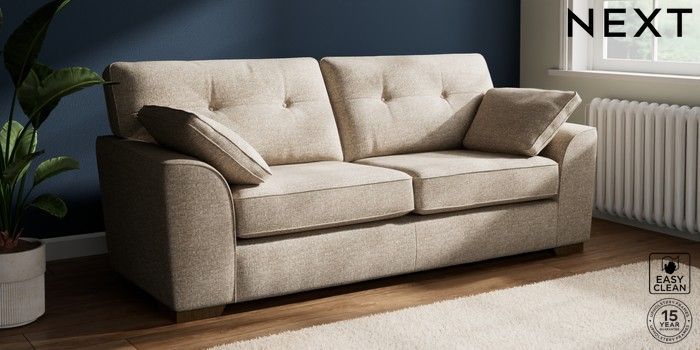 7.2.10 Buy Stamford Buttoned Back 3 Seater Sofa Chunky Boucle Easy Clean Mid Natural Large Square Angle - Mid from the Next UK online shop Click here to use our accessible website
