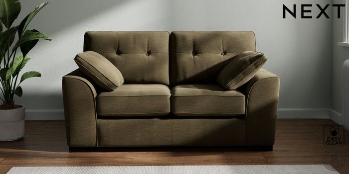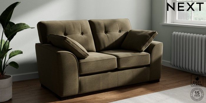 7.2.6 Buy Stamford Buttoned Back 2 Seater Small Sofa Fine Chenille Easy Clean Dark Moss Green Large Square Angle - Dark from the Next UK online shop Click here to use our accessible website