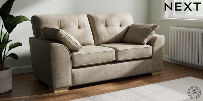 7.2.10 Buy Stamford Buttoned Back 2 Seater Sofa Monza Faux Leather Easy Clean Mink Brown Large Square Angle - Light from the Next UK online shop Click here to use our accessible website