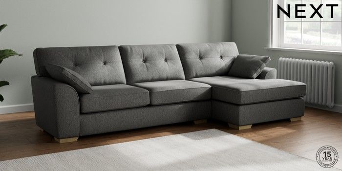 7.2.6 Buy Stamford Buttoned Back Large Sofa Chaise - Right Hand Tweedy Chenille Dark Grey Large Square Angle - Light from the Next UK online shop Click here to use our accessible website