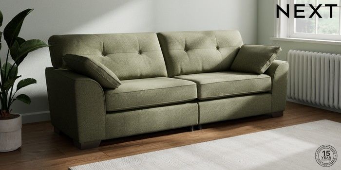 7.2.10 Buy Stamford Buttoned Back 4 Seater Sofa Tweedy Chenille Mid Moss Green Large Square Angle - Gunmetal from the Next UK online shop Click here to use our accessible website