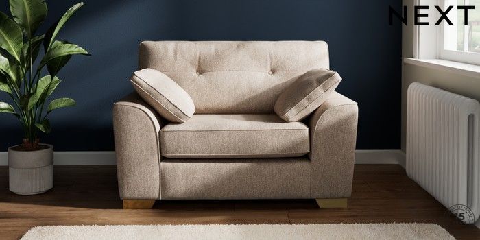 7.2.6 Buy Stamford Buttoned Back Snuggle Tweedy Chenille Mid Natural Large Square Angle - Brushed Brass from the Next UK online shop Click here to use our accessible website