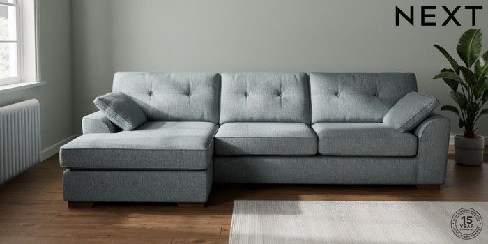 7.2.6 Buy Stamford Buttoned Back Large Sofa Chaise - Left Hand Chunky Weave Mid Blue Large Square Angle - Mid from the Next UK online shop Click here to use our accessible website