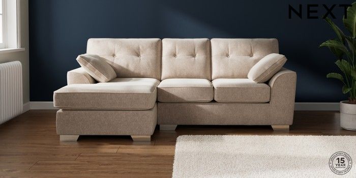 7.2.6 Buy Stamford Buttoned Back Small Sofa Chaise - Left Hand Cotswold Chenille Light Natural Large Square Angle - Chrome Metal from the Next UK online shop Click here to use our accessible website