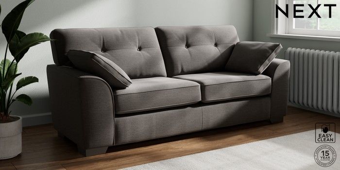 7.2.6 Buy Stamford Buttoned Back 3 Seater Sofa Fine Chenille Easy Clean Dark Smoke Grey Large Square Angle - Gunmetal from the Next UK online shop Click here to use our accessible website
