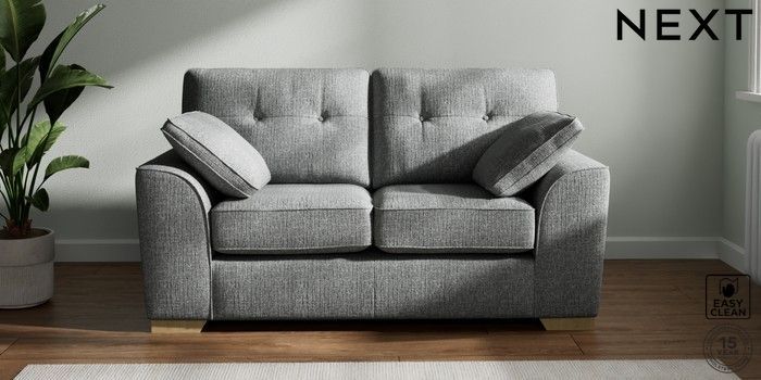 7.2.6 Buy Stamford Buttoned Back 2 Seater Small Sofa Chunky Boucle Easy Clean Mid Grey Large Square Angle - Light from the Next UK online shop Click here to use our accessible website