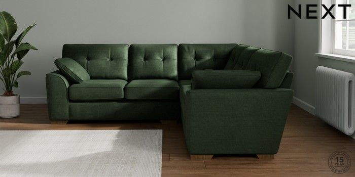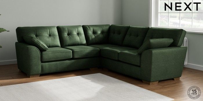7.2.6 Buy Stamford Buttoned Back Medium Corner Sofa - Universal Luxe Chenille Dark Green Large Square Angle - Mid from the Next UK online shop Click here to use our accessible website