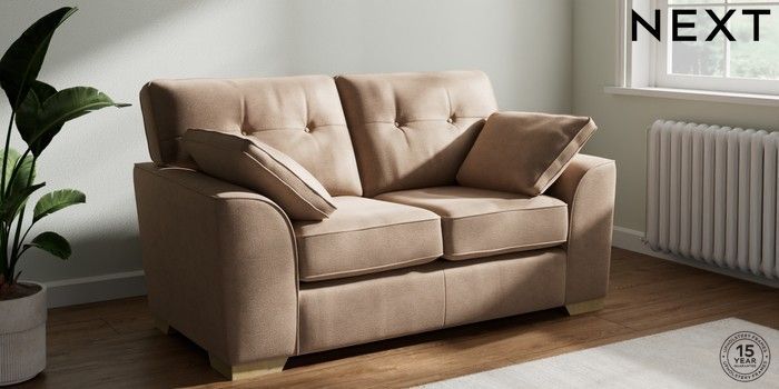 7.2.10 Buy Stamford Buttoned Back 2 Seater Small Sofa Luxe Chenille Mid Natural Large Square Angle - Light from the Next UK online shop Click here to use our accessible website