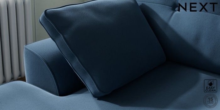 7.2.6 Buy Stamford Buttoned Back Small Sofa Chaise - Left Hand Plush Velvet Easy Clean Airforce Blue Large Square Angle - Gunmetal from the Next UK online shop Click here to use our accessible website
