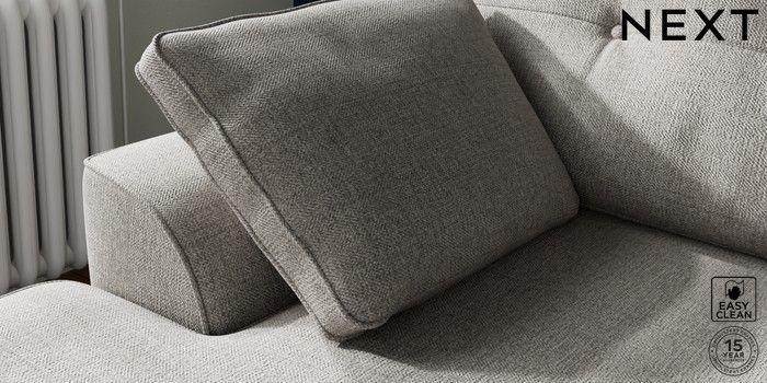 7.2.6 Buy Stamford Buttoned Back Small Sofa Chaise - Left Hand Woven Chenille Easy Clean Light Grey Large Square Angle - Brushed Brass from the Next UK online shop Click here to use our accessible website