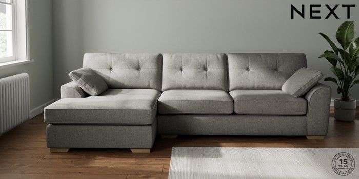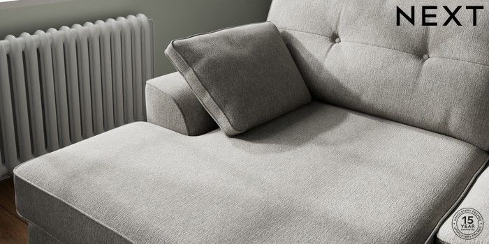 7.2.6 Buy Stamford Buttoned Back Large Sofa Chaise - Left Hand Tweedy Chenille Mid Grey Large Square Angle - Light from the Next UK online shop Click here to use our accessible website
