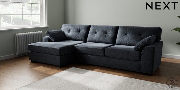 7.2.10 Buy Stamford Buttoned Back Large Sofa Chaise - Left Hand Boucle Chenille Dark Slate Blue Large Square Angle - Dark from the Next UK online shop Click here to use our accessible website