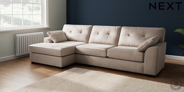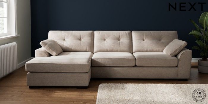 7.2.10 Buy Stamford Buttoned Back Large Sofa Chaise - Left Hand Boucle Chenille Light Natural Large Square Angle - Dark from the Next UK online shop Click here to use our accessible website