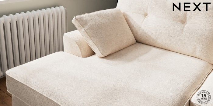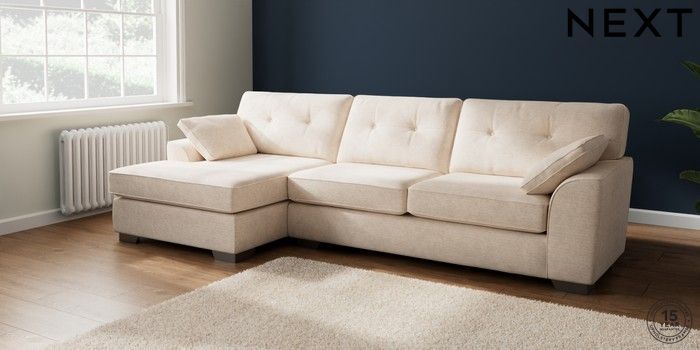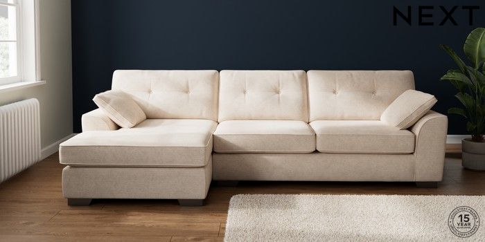 7.2.10 Buy Stamford Buttoned Back Large Sofa Chaise - Left Hand Boucle Chenille Oyster Large Square Angle - Gunmetal from the Next UK online shop Click here to use our accessible website