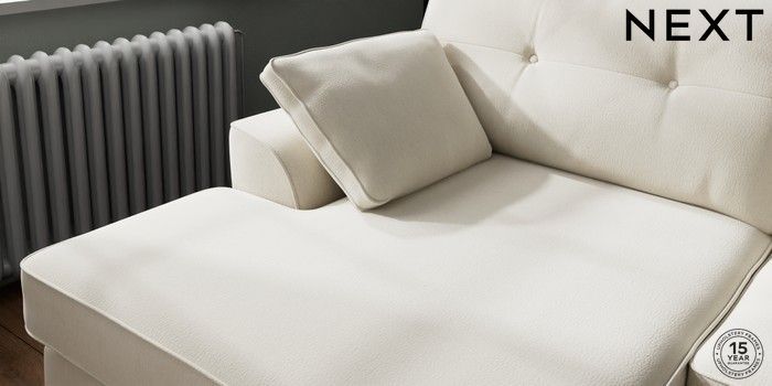 7.2.10 Buy Stamford Buttoned Back Large Sofa Chaise - Left Hand Relaxed Linen Look Oyster Large Square Angle - Brushed Brass from the Next UK online shop Click here to use our accessible website
