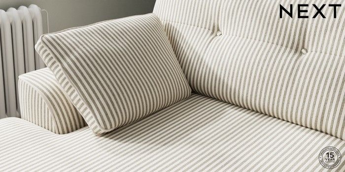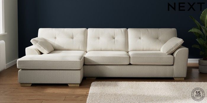 7.3.1 Buy Stamford Buttoned Back Large Sofa Chaise - Left Hand Chenille Stripe Moss Green Large Square Angle - Light from the Next UK online shop Click here to use our accessible website