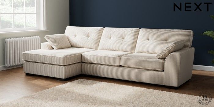 7.3.1 Buy Stamford Buttoned Back Large Sofa Chaise - Left Hand Chenille Stripe Natural Large Square Angle - Dark from the Next UK online shop Click here to use our accessible website