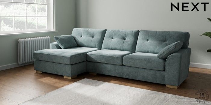 6.12.1 Buy Stamford Buttoned Back Large Sofa Chaise - Left Hand Chunky Chenille Light Teal Green Large Square Angle - Light from the Next UK online shop Click here to use our accessible website