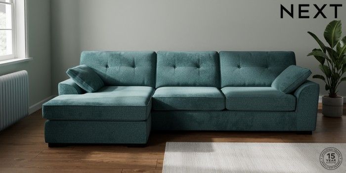 7.2.10 Buy Stamford Buttoned Back Large Sofa Chaise - Left Hand Chunky Chenille Mid Teal Green Large Square Angle - Dark from the Next UK online shop Click here to use our accessible website