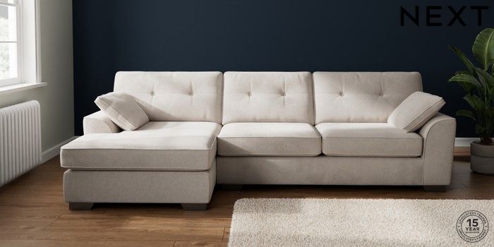 7.2.10 Buy Stamford Buttoned Back Large Sofa Chaise - Left Hand Chunky Chenille Oyster Large Square Angle - Gunmetal from the Next UK online shop Click here to use our accessible website