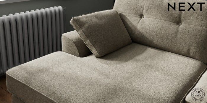 7.2.10 Buy Stamford Buttoned Back Large Sofa Chaise - Left Hand Chunky Marl Light Olive Green Large Square Angle - Light from the Next UK online shop Click here to use our accessible website