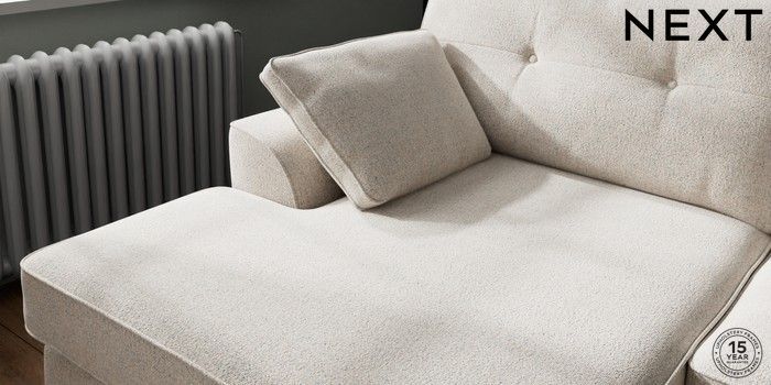 7.2.10 Buy Stamford Buttoned Back Large Sofa Chaise - Left Hand Chunky Marl Oyster Large Square Angle - Chrome Metal from the Next UK online shop Click here to use our accessible website